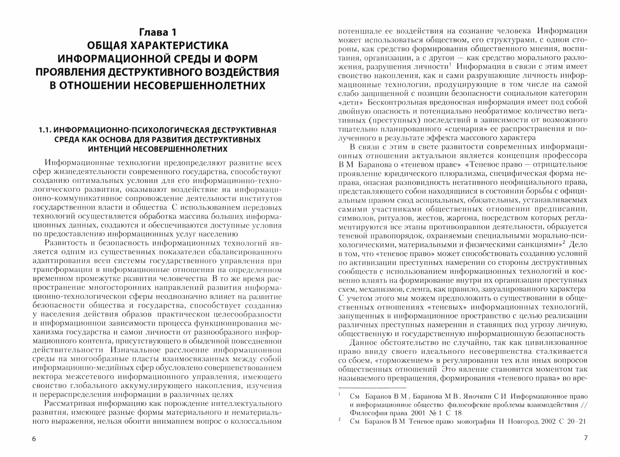 В монографии с учетом научно-правового анализа, опыта практической и общественной деятельности проведен системный и комплексный анализ проблем, связанных с деструктивным воздействием на поведение несовершеннолетних в Российской Федерации. Исследование было направлено на выработку одного из первых научных определений и признаков информационно деструктивной психологической среды, являющейся основой для совершения преступлений против жизни и здоровья в отношении несовершеннолетних, а также научно-практических предложений по совершенствованию государственных мер по противодействию деструктивному воздействию в молодежной среде.