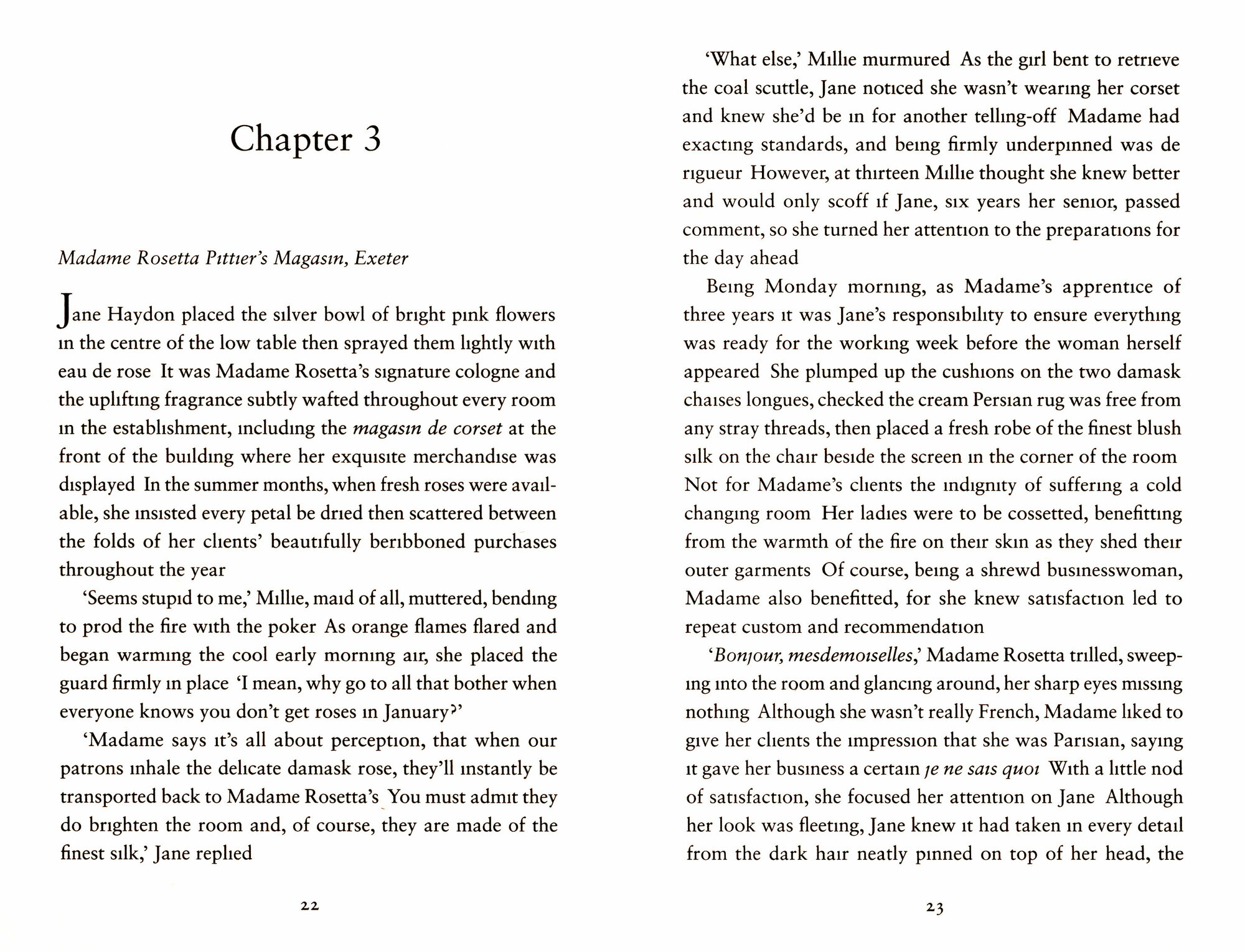 Nettlecombe Manor, nestled in the rolling hills of Devon, is home to the Lord Farringdon and his second wife, Lady Charlotte. As if running the vast estate wasn't enough, Lord Farringdon has five daughters to keep him busy. Lady Charlotte is determined that the betrothal of the eldest, Louisa, should be celebrated with a ball which is the envy of Devon society and summons a corsetiere from Exeter to measure them up for new corsets.