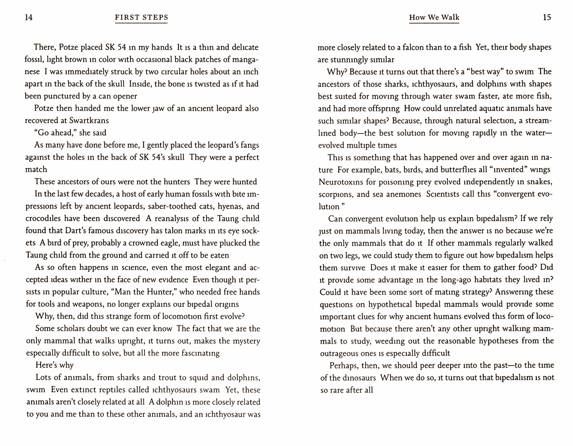 First Steps takes our ordinary, everyday walking experience and reveals how unusual and extraordinary it truly is. The seven-million-year-long journey through the origins of upright walking shows how it was in fact a gateway to many of the other attributes that make us human-from our technological skills and sociality to our thirst for exploration.