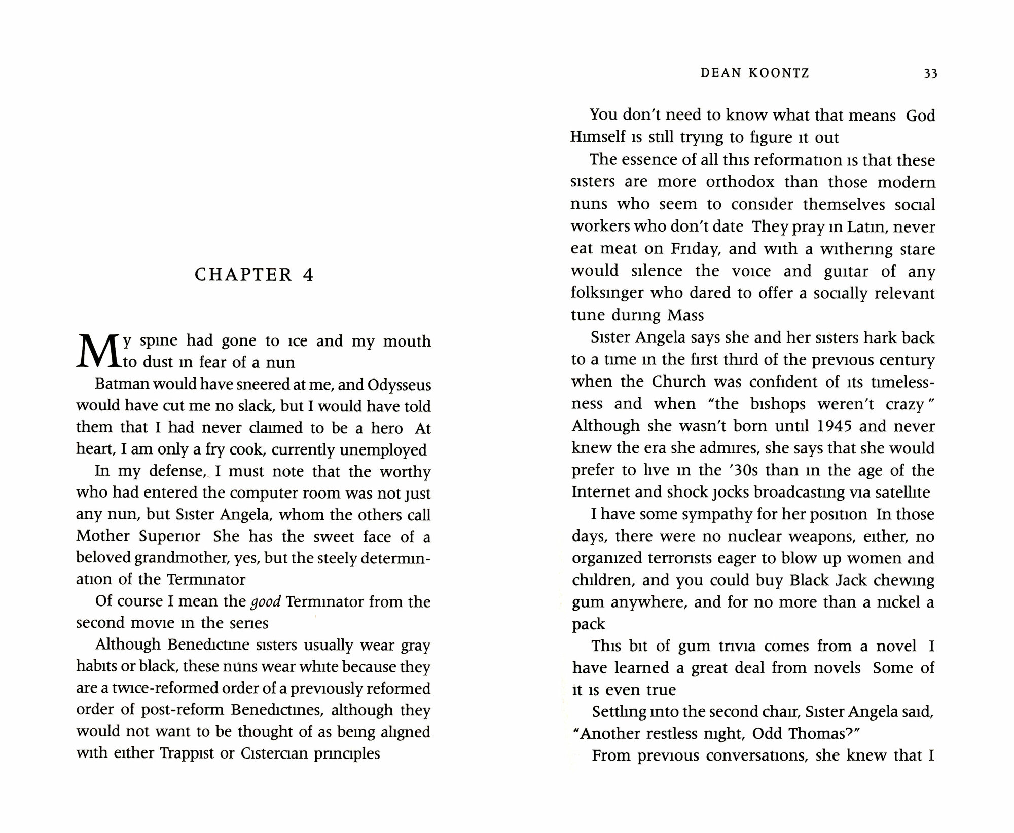 As ever, where Odd Thomas goes, strangeness goes too. A white dog named Boo befriends him – as does the ghost of Elvis. And a world-famous physicist is conducting experiments in the catacombs of the abbey. Could this be why Odd can once again see bodachs, shadowy harbingers of violence? They prowl the halls, suggesting horror to come.
