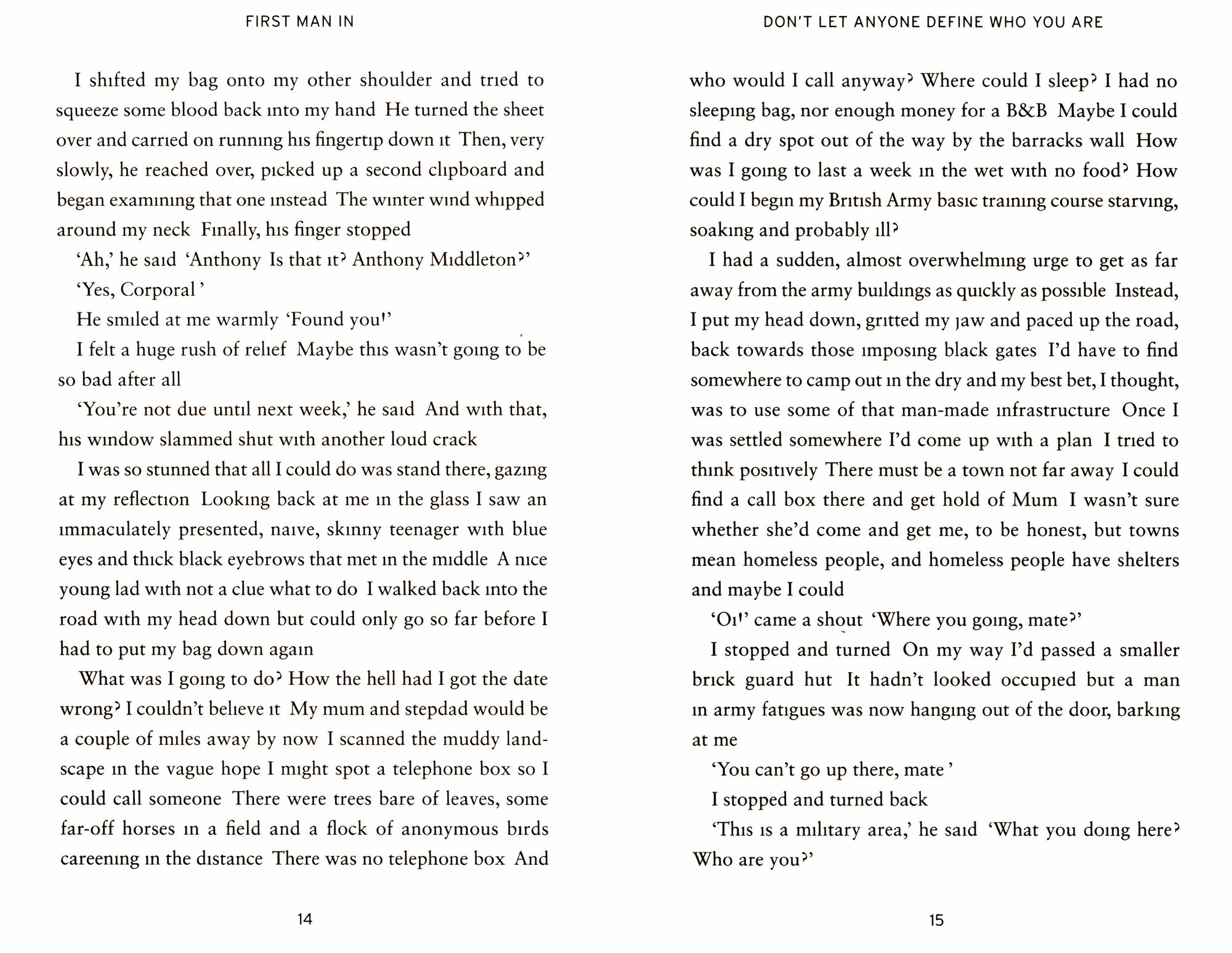 In this fascinating, exhilarating and revealing book, Ant speaks about the highs and gut-wrenching lows of his life – from the thrill of passing Special Forces Selection to dealing with the early death of his father and ending up in prison on leaving the military – and draws valuable lessons that we can all use in our daily lives.