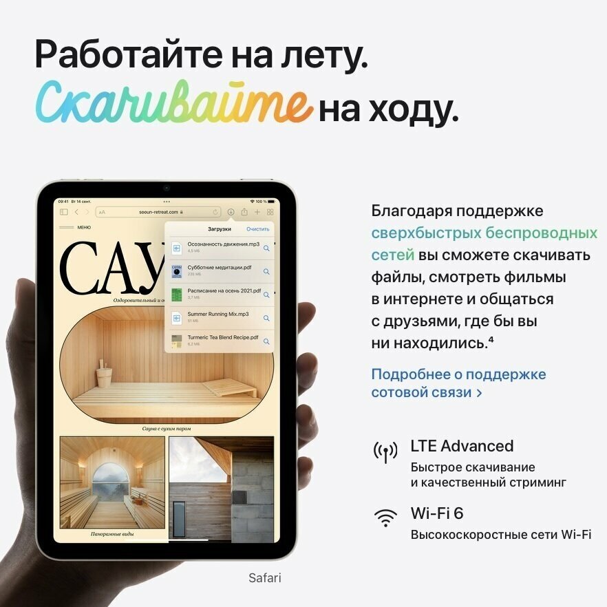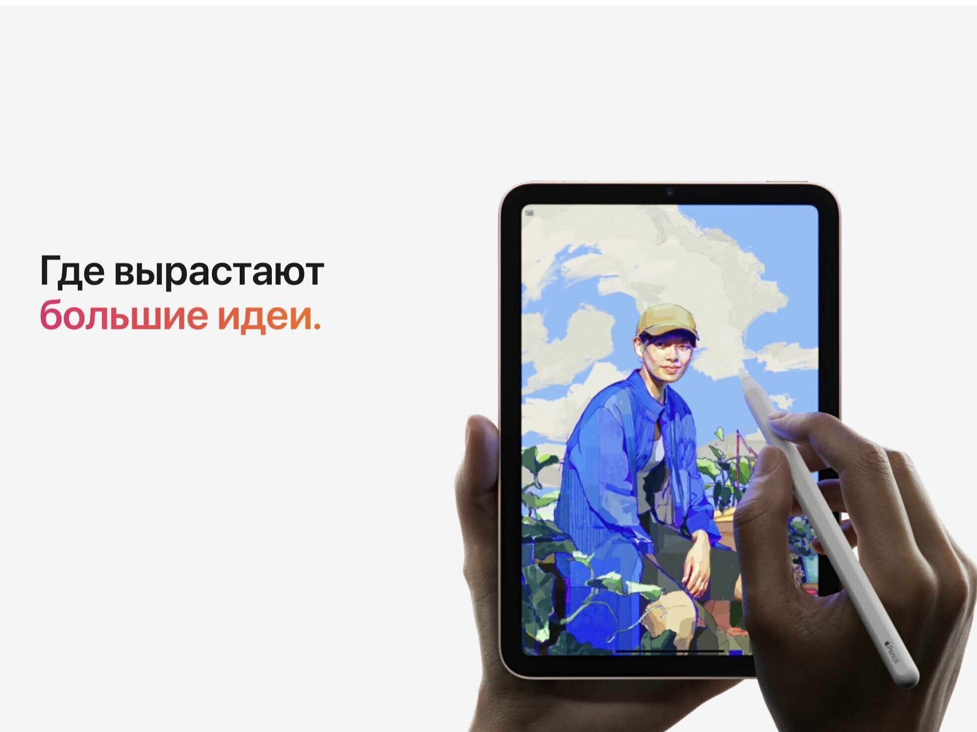 Великолепный дисплей Liquid Retina с диагональю 8,3 дюйма занимает всю переднюю панель. Экран стал больше, но устройство осталось компактным и помещается у вас на ладони.Apple Pencil теперь можно примагнитить к боковой поверхности iPad mini — так он будет всегда под рукой.Новый чип A15 Bionic и аккумулятор, которого хватит на целый день, — с ними вы можете работать, творить и играть где угодно.