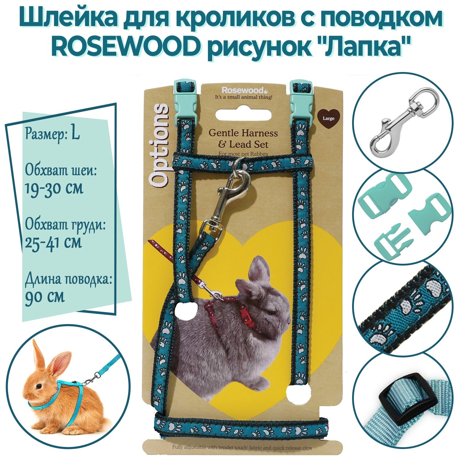 На сегодняшний день товар «Rosewood Шлейка для кроликов с поводком "Рисунок лапка" L голубая (Великобритания) (19304/blue)» можно купить с кешбеком в 1 магазине: Яндекс.Маркет