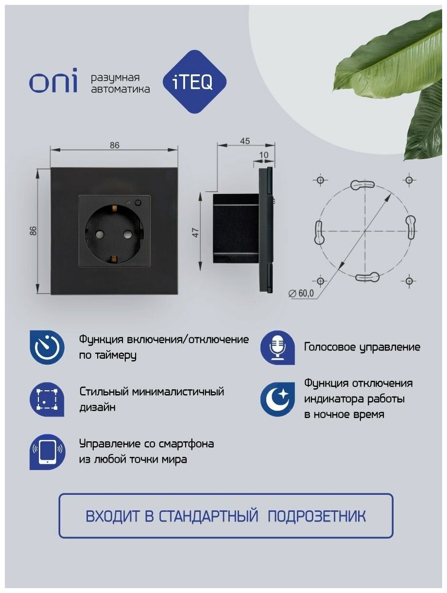 Умная розетка IEK iTeq Smart черный (it-r16sfwbg-k02) iTEQ SMART Wi-Fi (IT-R16SFWBG-K02)
