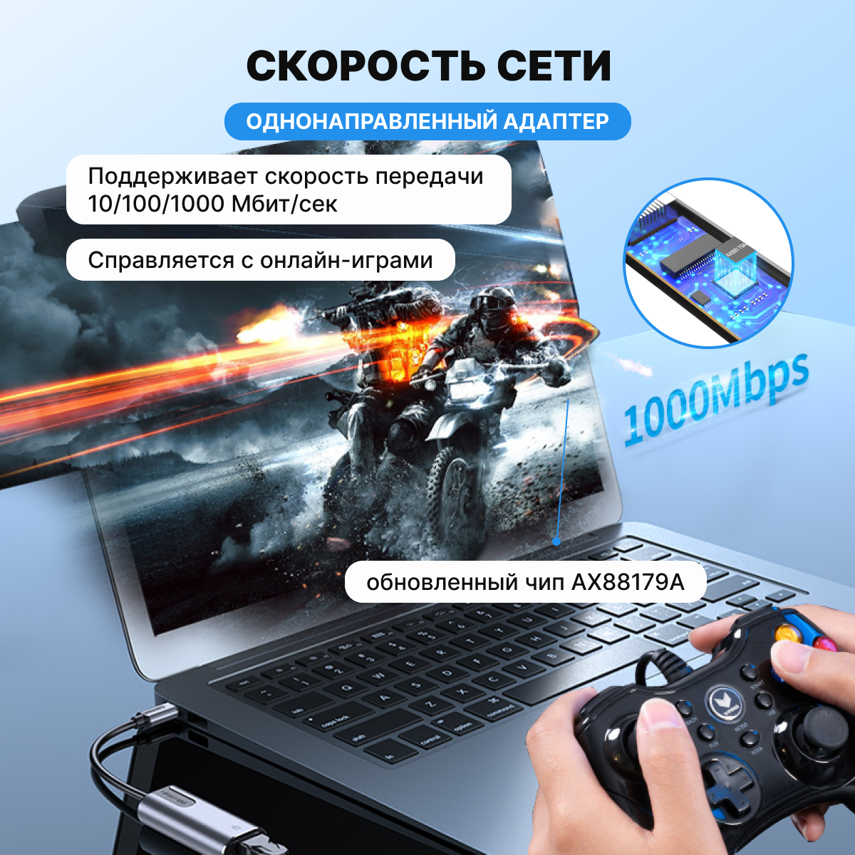 | Дополнительная информация | Скорость передачи данных 1000 Мб/с, корпус алюминиевый сплав |
