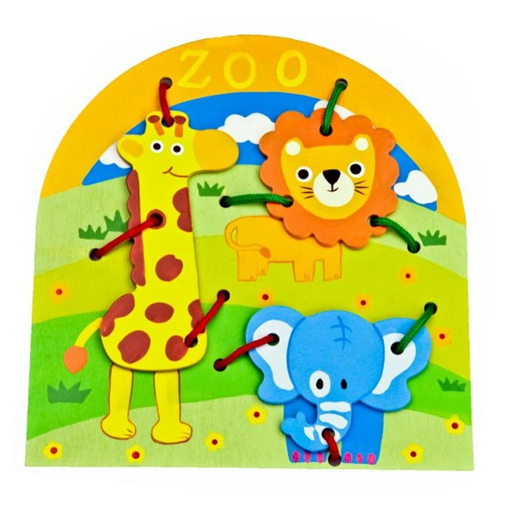 Красочная шнуровка Mapacha Животные для малышей. На солнечной лужайке можно расположить забавных животных - жирафика, слона и львенка. С помощью шнуровки их легко прикрепить к основной фигуре. Такой набор поможет развить мелкую моторику, воображение и логическое мышление.