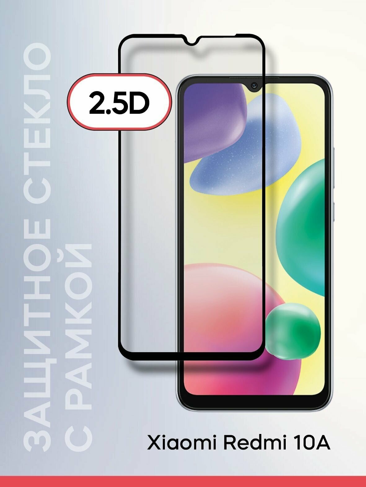 Стекло защитное Red Line Xiaomi Redmi 10A Full Screen tempered glass FULL GLUE черный (УТ000031726)