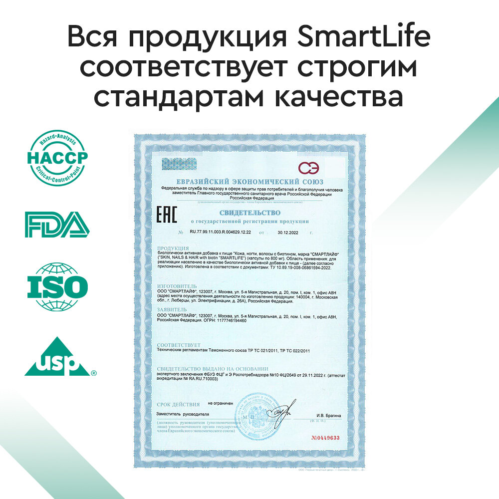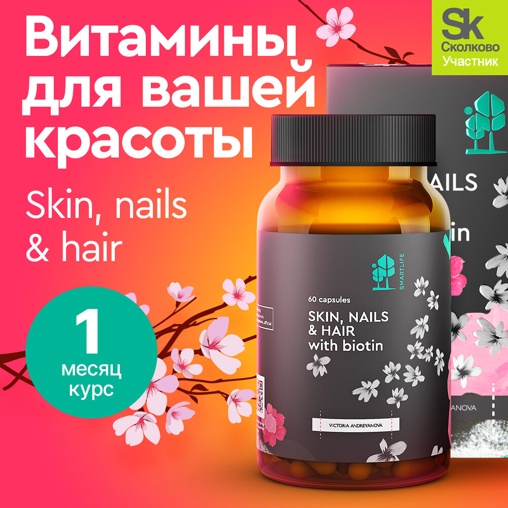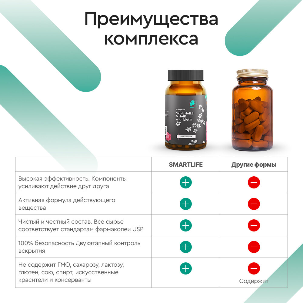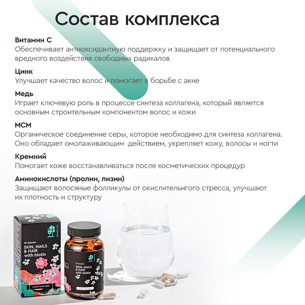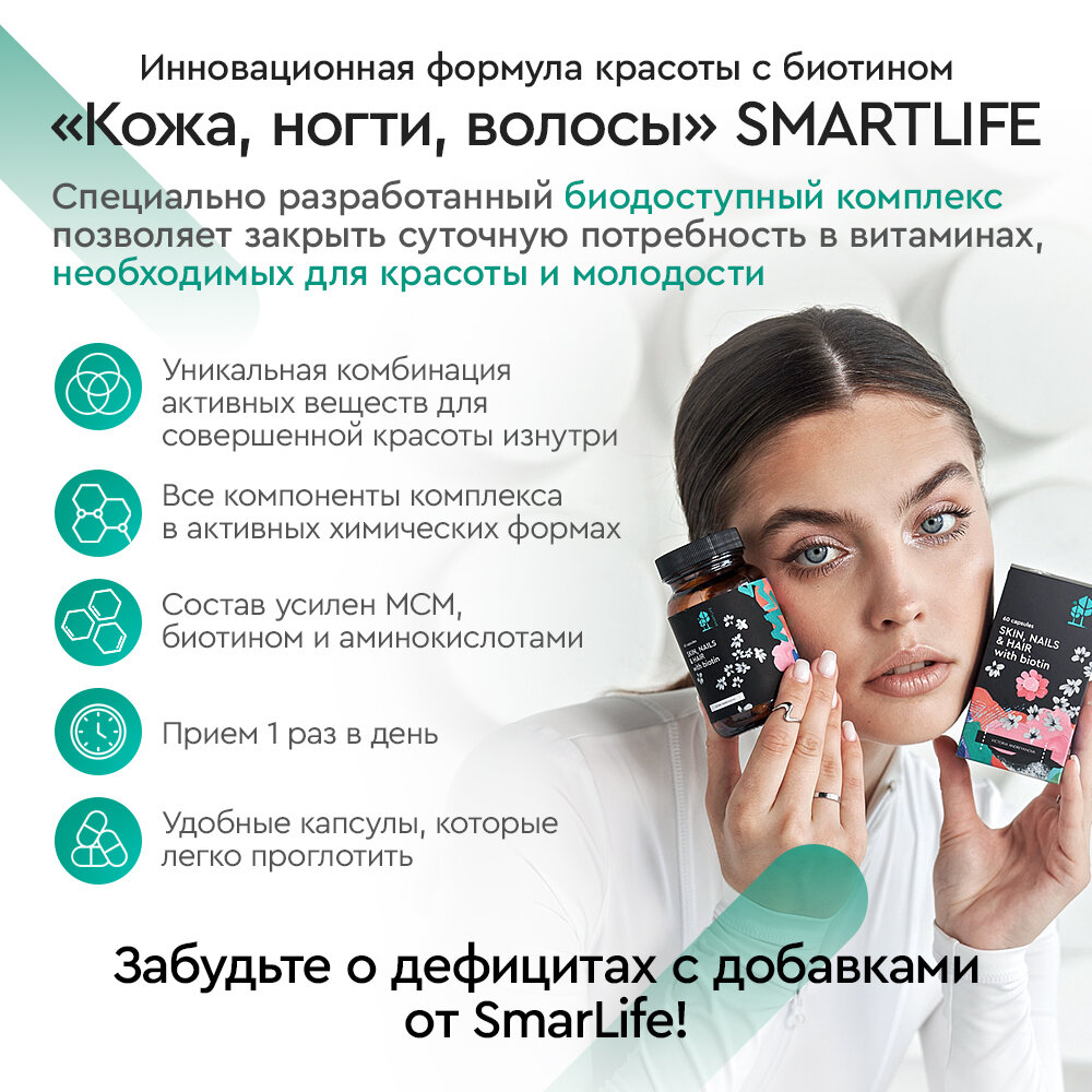 Комплекс для кожи ногтей и волос с биотином 60 капсул Smartlife (ЭХ99989435692)