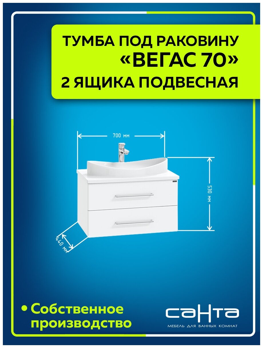 Тумба с раковиной СанТа Вегас 70 226037 подвесная.
