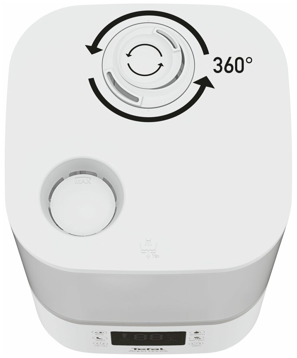 Когда дело доходит до сухости воздуха в доме, у Tefal есть решение: новый увлажнитель воздуха Aqua Boost. Сильный выход пара на 360° обеспечивают быстрое и однородное увлажнение для достижения желаемого уровня влажности в доме в кратчайшие сроки. Его новый наполнитель позволяет легко наполнять и опустошать его за один раз, а его антибактериальное действие гарантирует, что 99,9% бактерий в каплях воды будут уничтожены, что означает более чистый воздух для вас и ваших близких. Предлагая широкое покрытие до 50 м2, этот домашний увлажнитель даже оснащен интеллектуальным контролем влажности, который автоматически поддерживает оптимальный уровень — идеальное решение для спальни или детской. И последнее, но не менее важное: его бесшумная конструкция и высокая автономность означают мощное увлажнение в течение всей ночи и спокойный сон!