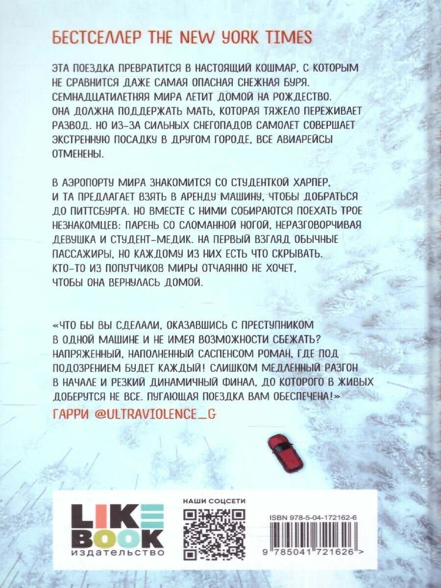 Напряженный, наполненный саспенсом роман, где под подозрением будет каждый! Слишком медленный разгон в начале и резкий динамичный финал, до которого в живых доберутся не все. Пугающая поездка вам обеспечена!" - Гарри @Ultraviolence_g