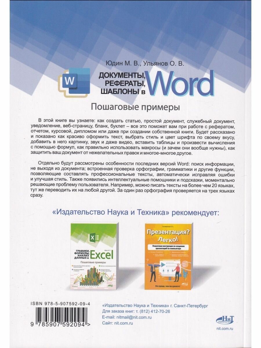 Документы рефераты шаблоны в WORD Пошаговые примеры Справочник-практикум (Юдин М., Ульянов О.); Наука и Техника, 2023