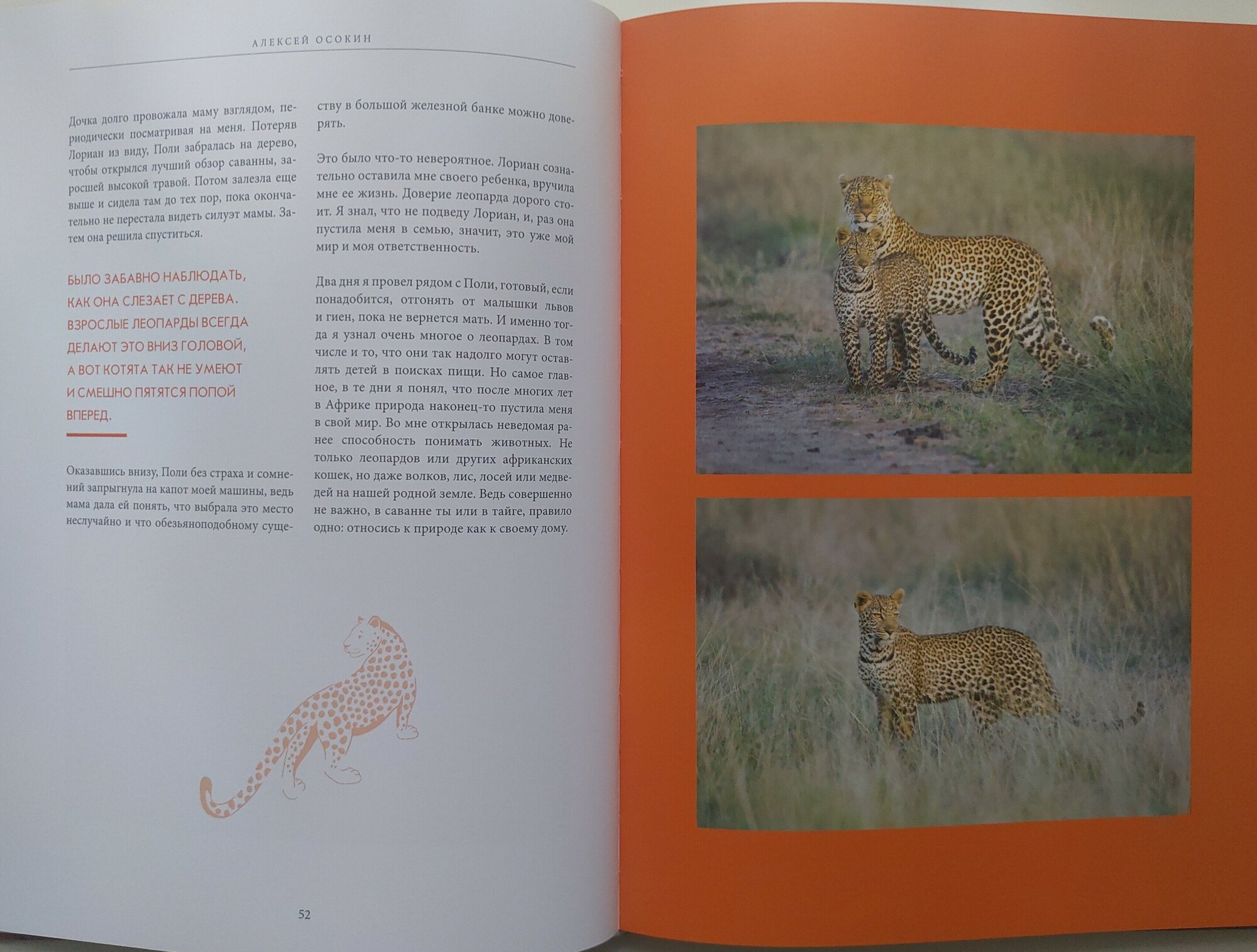 Потрясающая книга! Книга-альбом. Я начала читать и не могла оторваться. Самое главное, что очень интересно и увлекательно написано, слог легкий. Читаешь и как-будто находишься рядом с хищниками. Ну, а фотографии-это чудо, на целый разворот и в полстраницы, крупным планом. Показана жизнь в саванне гепардов, леопардов и львов. Описана работа рейнджеров. Очень впечатляющий альбом.