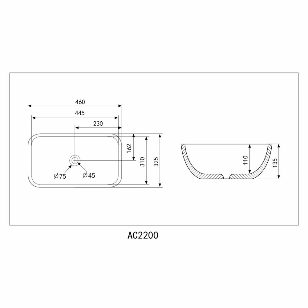 Раковина-чаша Abber Rechteck 46 AC2200MB.