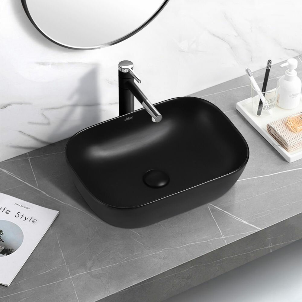 Раковина Abber Rechteck 46х32,5 AC2200MB в современном стиле, передается во всех элементах данной модели. Материалом, из которого произведена раковина является керамика, данный материал отличается максимально гладкой поверхностью, и абсолютной гигиениченостью.