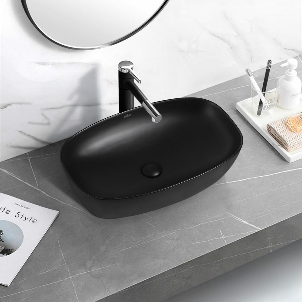 Раковина Abber Rechteck 60,5х39 AC2206MB в современном стиле, передается во всех элементах данной модели. Материалом, из которого произведена раковина является керамика, данный материал отличается максимально гладкой поверхностью, и абсолютной гигиениченостью.