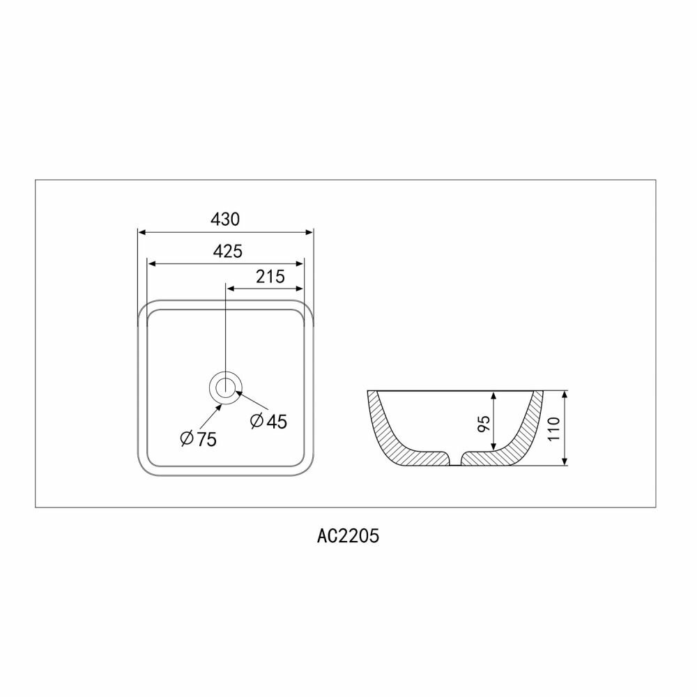 Раковина Abber Rechteck 43х43 AC2205 в современном стиле, передается во всех элементах данной модели. Материалом, из которого произведена раковина является керамика, данный материал отличается максимально гладкой поверхностью, и абсолютной гигиениченостью.