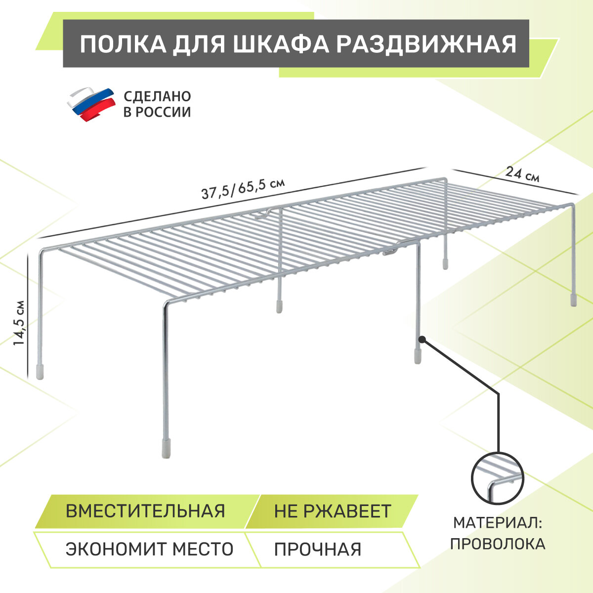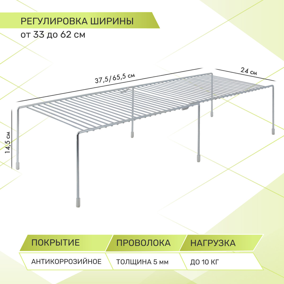 Полка имеет сборно-разборную конструкцию, вы можете легко регулировать длину полки от 35 см до 66 см. Раздвижная полка подойдет для шкафа, будет отлично смотреться на кухонном рабочем столе, в гараже или любом другом месте. Вы можете поставить на нее цветы или рассаду, посуду, книги, коробки или инструменты. Полка раскладная сделана из качественного металла и способна выдержать до 10 кг веса. Полку можно размещать в сыром и влажном месте, она не будет ржаветь, благодаря специальному покрытию.