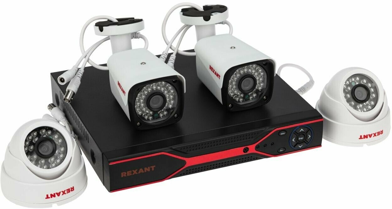 Готовый к установке комплект видеонаблюдения REXANT, состоящий из 2 всепогодных цилиндрических AHD видеокамер, двух купольных AHD видеокамер внутренней установки и 4-канального AHD-видеорегистратора. Видеокамеры оснащены высокочувствительной матрицей, предоставляющей превосходное качество изображения. Оборудование работает на основе технологии AHD, позволяющей передавать изображение с разрешением 1080р по коаксиальному кабелю на расстояние до 500 м без потерь и задержек.