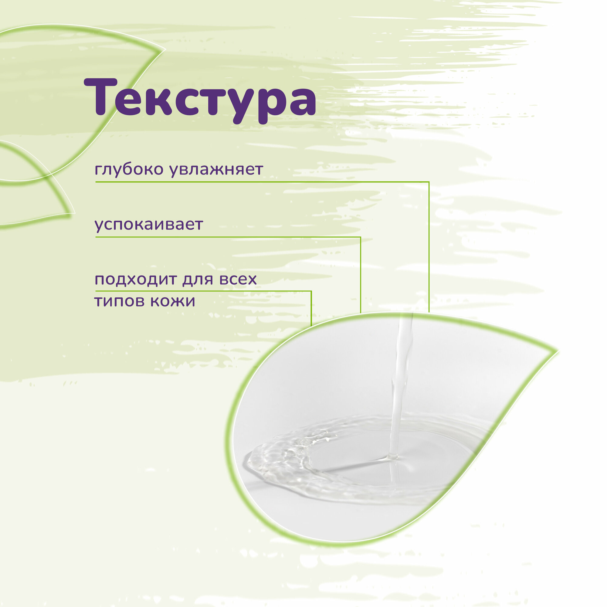 Алоэ вера: Успокаивает, увлажняет и заживляет кожу, предотвращает ее обезвоживание, обладает противовоспалительными и антибактериальными свойствами.