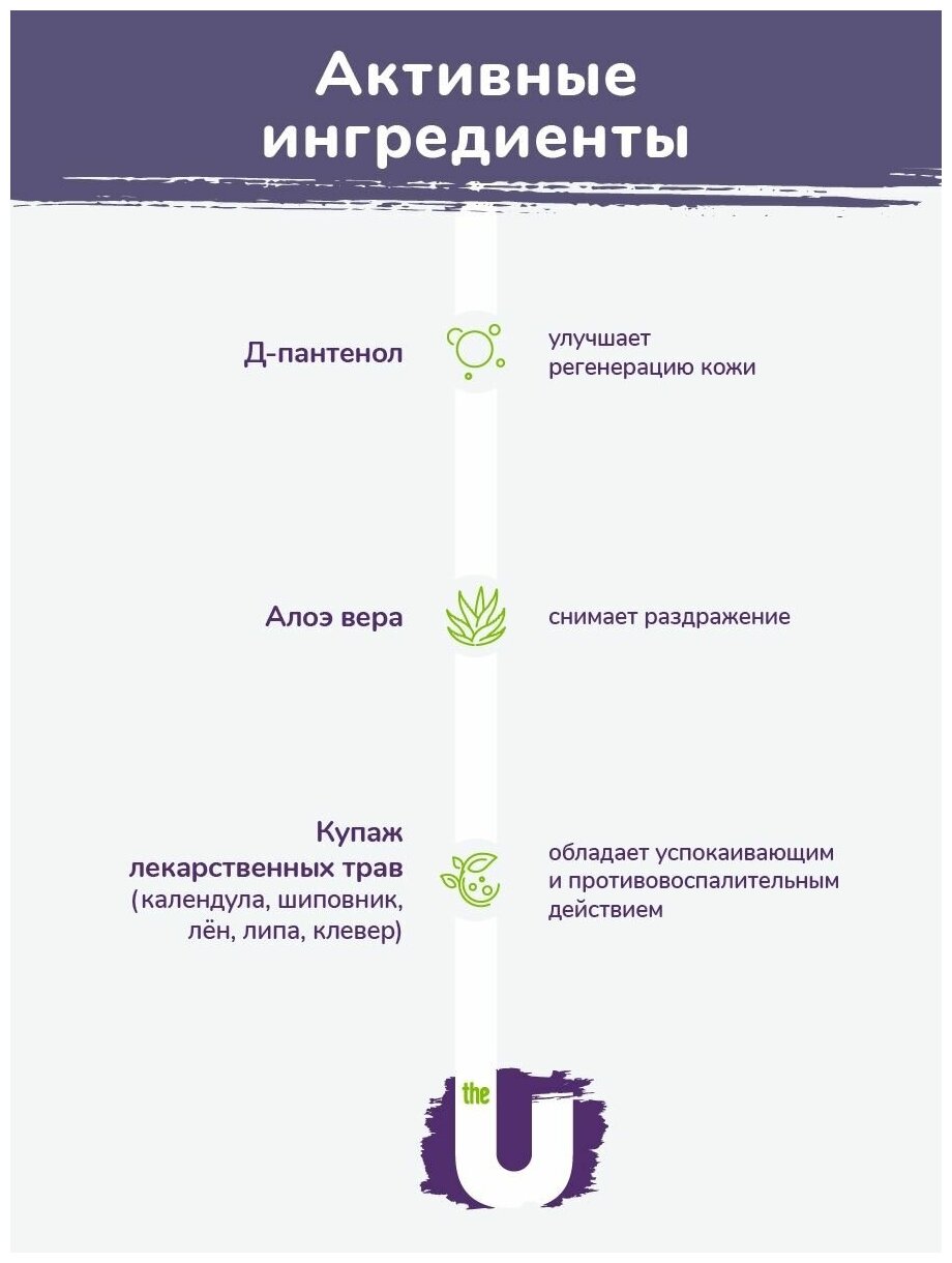 Купаж лекарственных трав (календула, шиповник, лен, липа, клевер): Успокаивает кожу, обладает противовоспалительными свойствами.