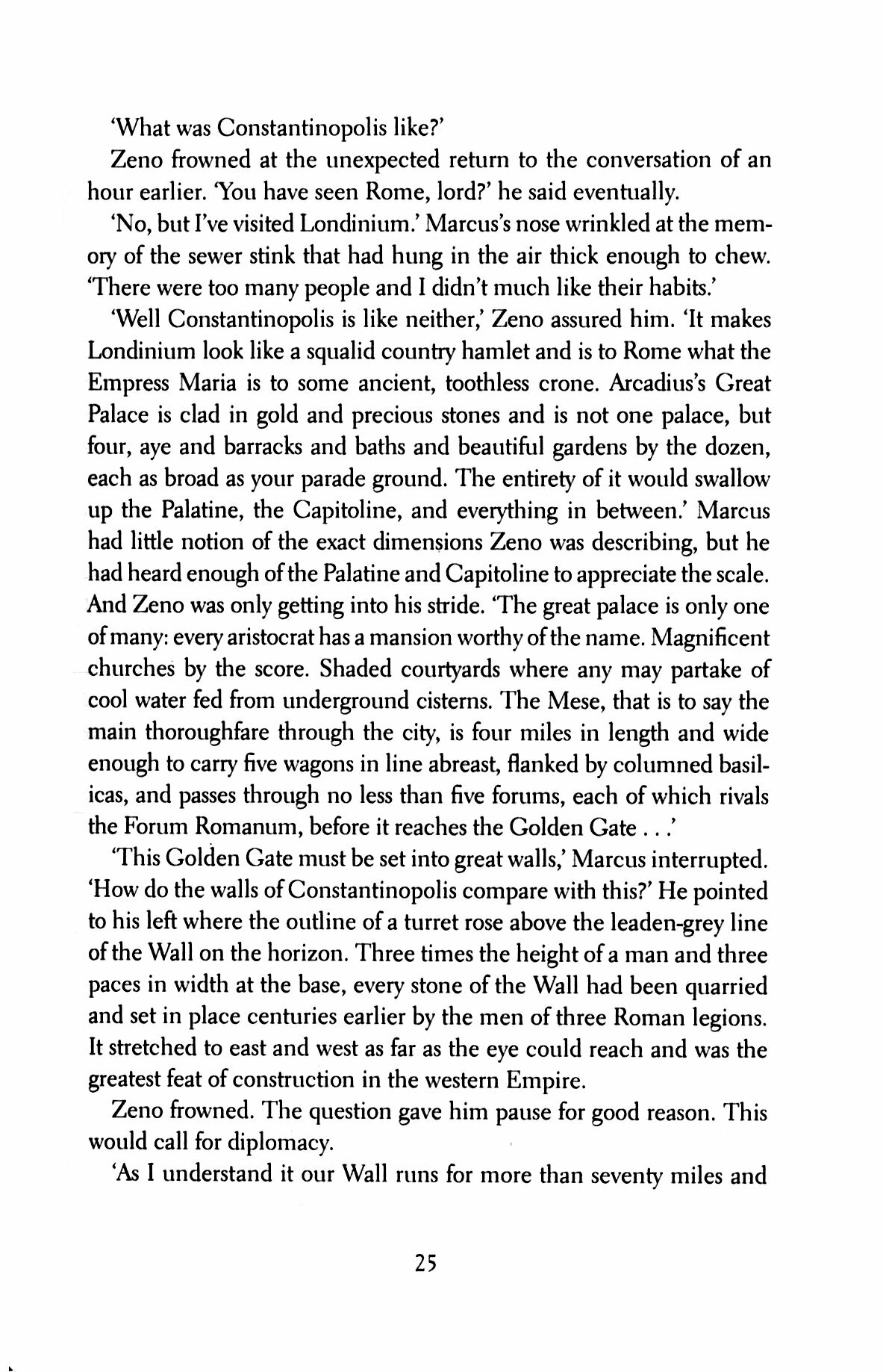 Yet as this tour of the wall progresses, it becomes increasingly clear that this is more than a routine inspection. Why is Marcus stripping the defences of cavalry to strengthen his own force? Is he negotiating with the Picts - or conspiring with them? And who is the mysterious figure who follows Marcus' every move and yet hides in the shadows?