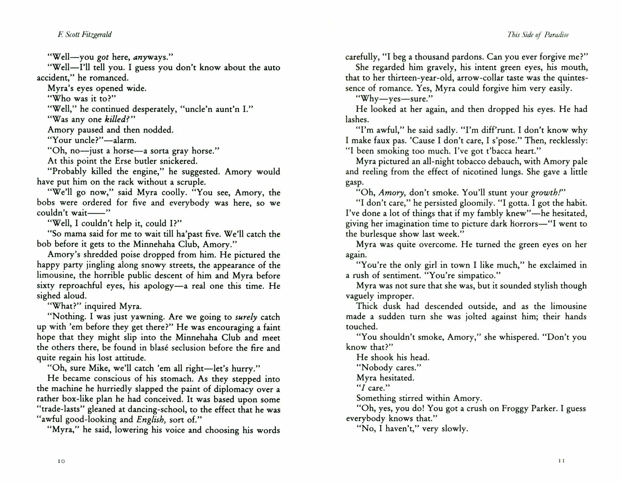 The story of a young man's painful sexual and intellectual awakening that echoes Fitzgerald's own career, it is also a portrait of the lost generation that followed straight on from the First World War, 'grown up to find all Gods dead, all wars fought, all faiths in man shaken' and wanting money and success more than anything else.