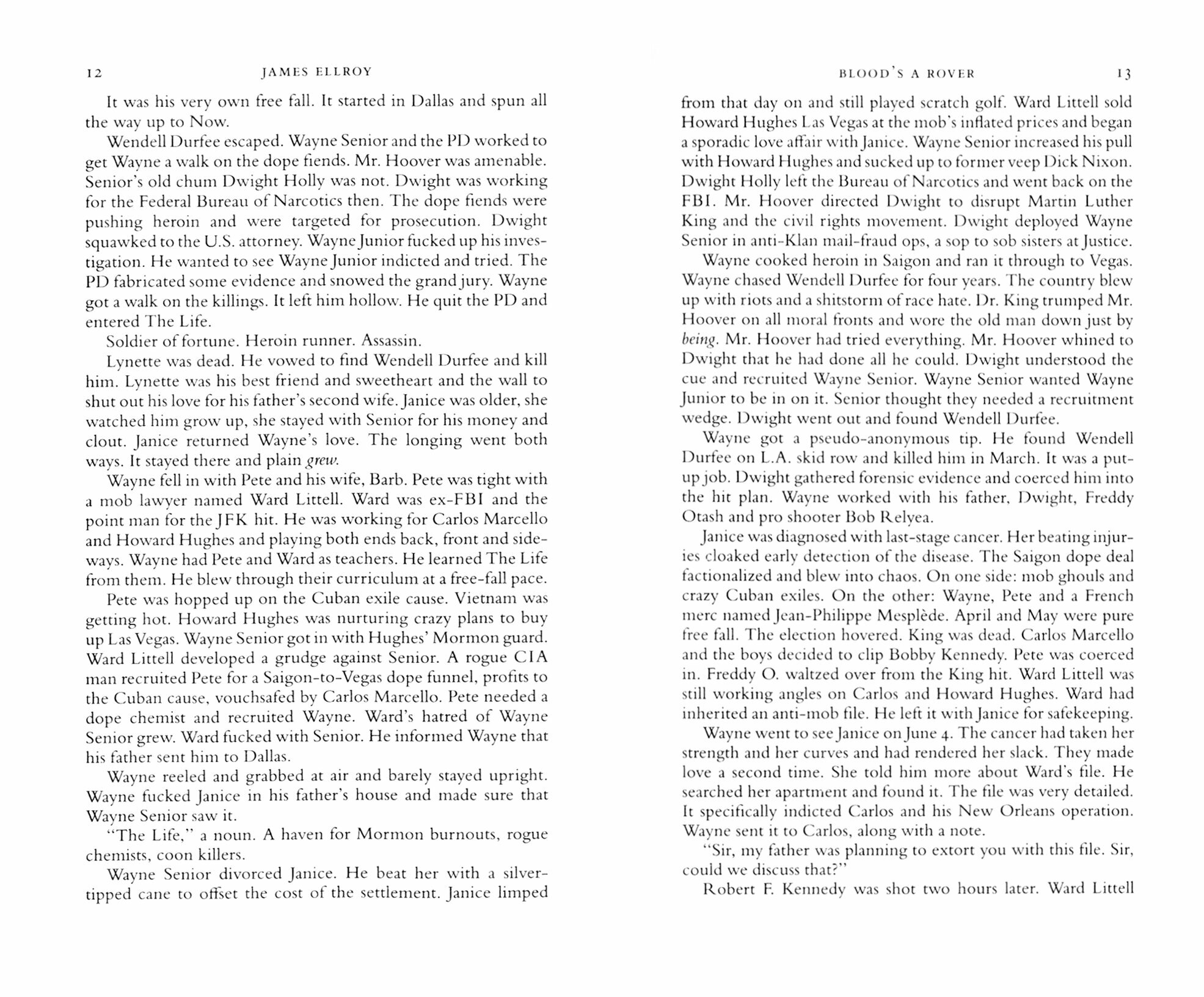 Thus begins the Underworld U.S.A. Trilogy. It's James Ellroy's pop history of the 1960s, his window-peeper's view of government misconduct, his dirty trickster's take on the great events of an incendiary era. It's a tour de force of the American idiom, and an acknowledged masterpiece.