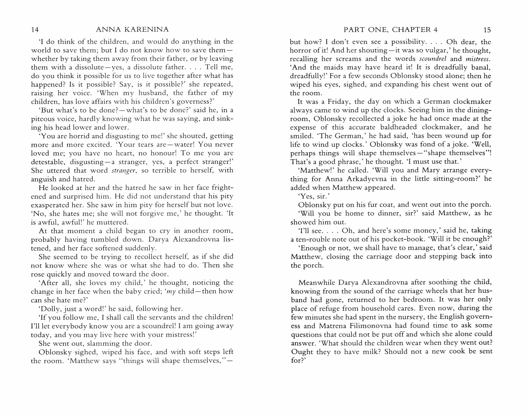 A famous legend surrounding the creation of Anna Karenina tells us that Tolstoy began writing a cautionary tale about adultery and ended up by falling in love with his magnificent heroine. It is rare to find a reader of the book who doesn’t experience the same kind of emotional upheaval: Anna Karenina is filled with major and minor characters who exist in their own right and fully embody their mid-nineteenth-century Russian milieu, but it still belongs entirely to the woman whose name it bears, whose portrait is one of the truest ever made by a writer.
