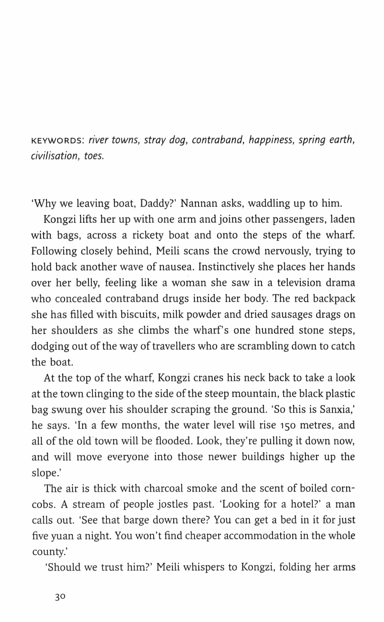 For years they drift south through the poisoned waterways and ruined landscapes of China, picking up work as they go along, scavenging for necessities and flying from police detection. As Meili’s body continues to be invaded by her husband and assaulted by the state, she fights to regain control of her fate and that of her unborn child.