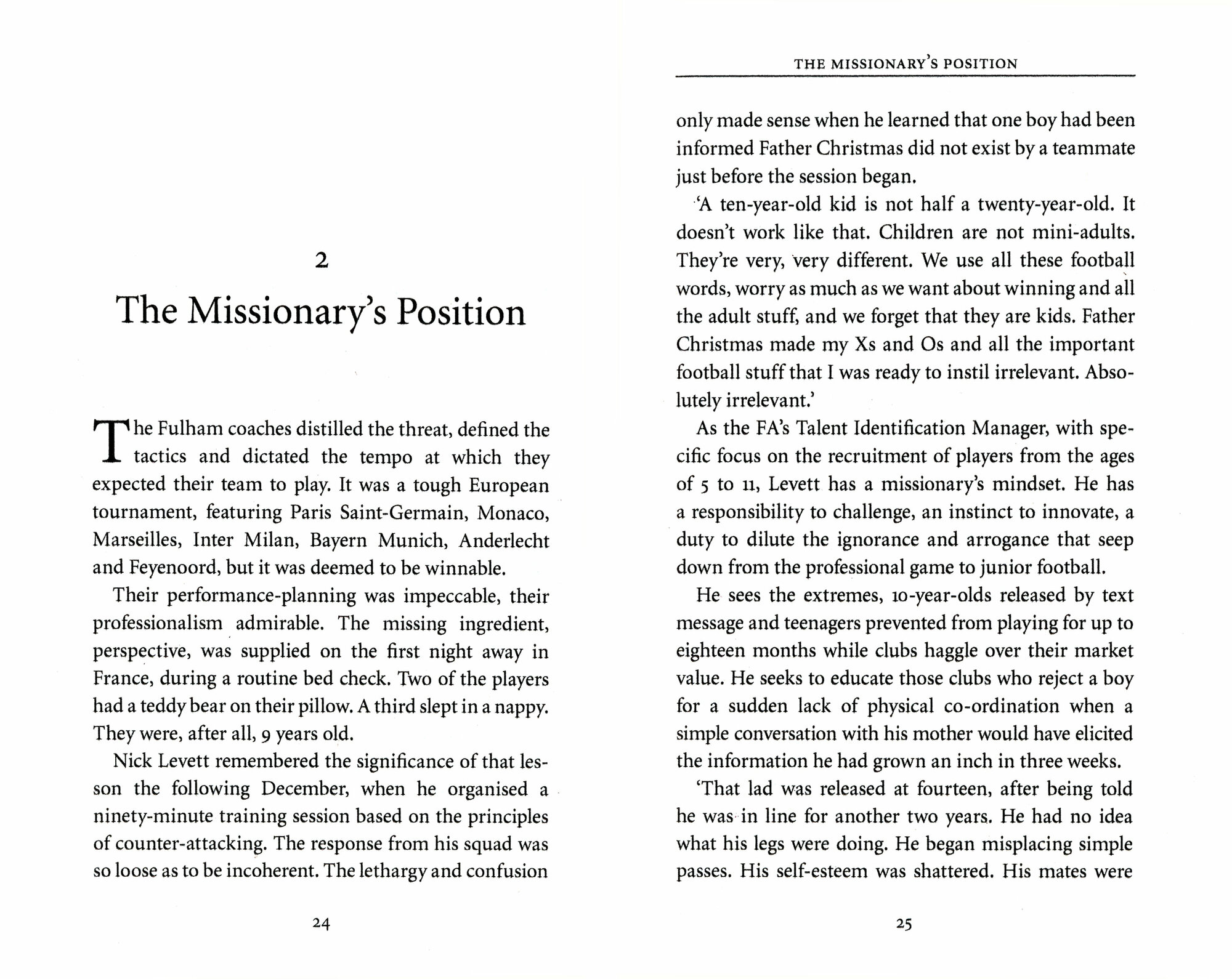 Michael Calvin provides the answers on a journey from non-league grounds to hermetically sealed Premier League palaces, via gang-controlled sink estates and the England team’s inner sanctum. He interviews decision makers, behavioural specialists, football agents and leading coaches. He shares the hopes and fears of players and their parents. He exposes bullying and a black economy in which children are commodities, but remains true to the dream.