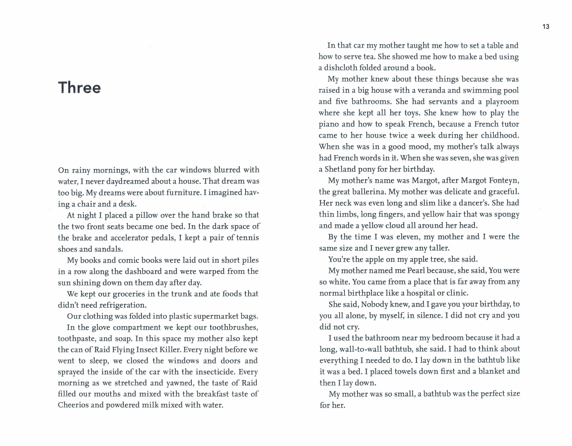 Fourteen-year-old Pearl France lives in the front seat of a broken down car and her mother Margot lives in the back. Together they survive on a diet of powdered milk and bug spray, love songs and stolen cigarettes.