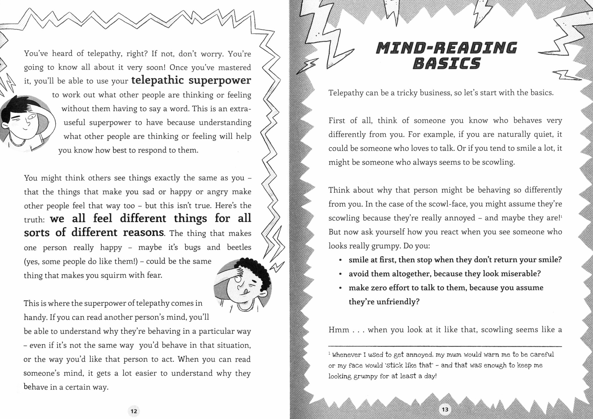 From developing their telepathic powers (empathy and listening skills), to controlling fire (anger) and water (anxiety), this book his book will take children through a series of activities designed to help them feel in control of their lives, happier and more confident.