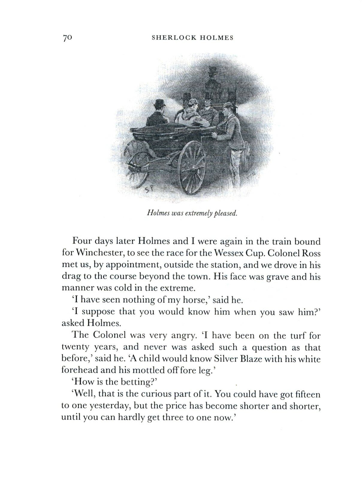 ‘The Speckled Band’, a Victorian melodrama in a country house, comes complete with murderous villain, murdered heroine, and a very unpleasant snake; ‘Silver Blaze’ tells of a missing race horse on Dartmoor which turns out not to be missing at all, and a murder that never was. In ‘The Redheaded League’ a pawnbroker answers an advertisement for a red-headed man and bizarrely finds himself copying out the Encyclopedia Britannica; in ‘The Bruce Partington Plans’ Holmes is skulking in the London Underground with a dead body when his patriotic services are called upon to find some stolen state secrets in the run-up to World War I.