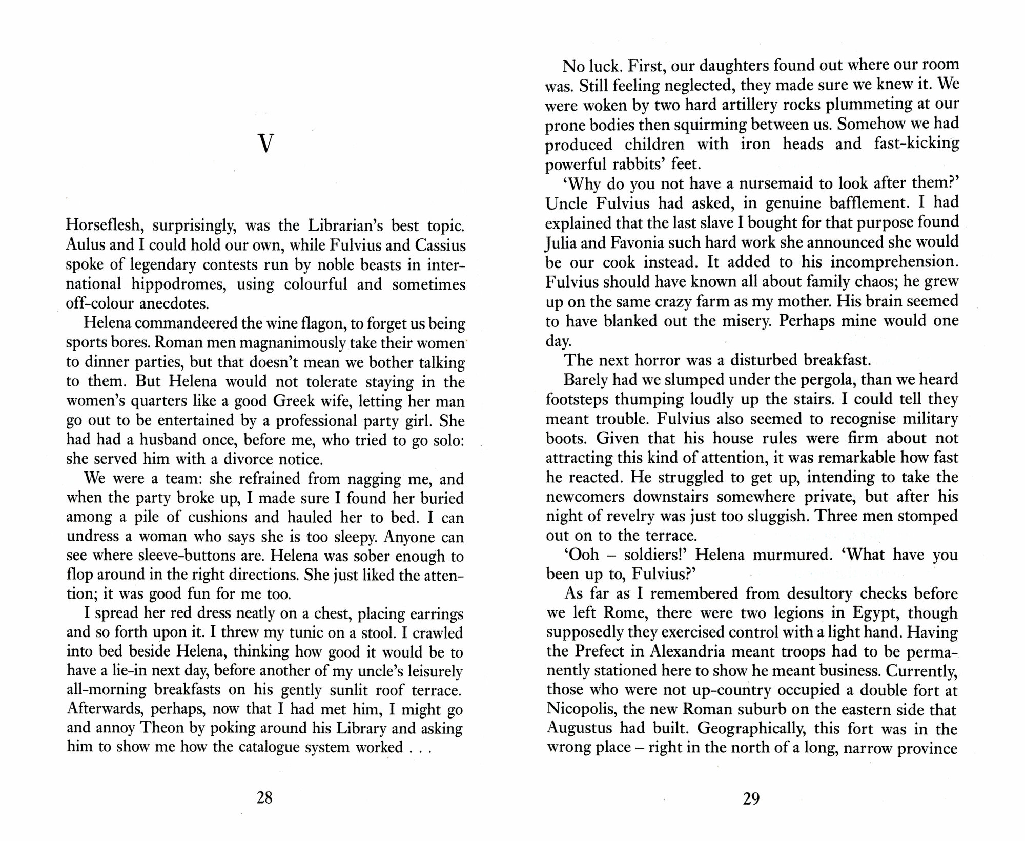 Unfortunately, when Marcus Didius Falco pays a visit he discovers it's also a hotbed of schemers and murderers. When the Head Librarian dies in suspicious circumstances, the Roman authorities are only too happy to dump the case on one of the Empire's most celebrated investigators - all adding up to a typical Falco family vacation.