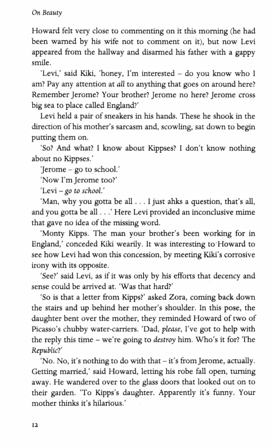 Set between New England and London, On Beauty concerns a pair of feuding families - the Belseys and the Kipps - and a clutch of doomed affairs. It puts low morals among high ideals and asks some searching questions about what life does to love. For the Belseys and the Kipps, the confusions - both personal and political - of our uncertain age are about to be brought close to home: right to the heart of family.