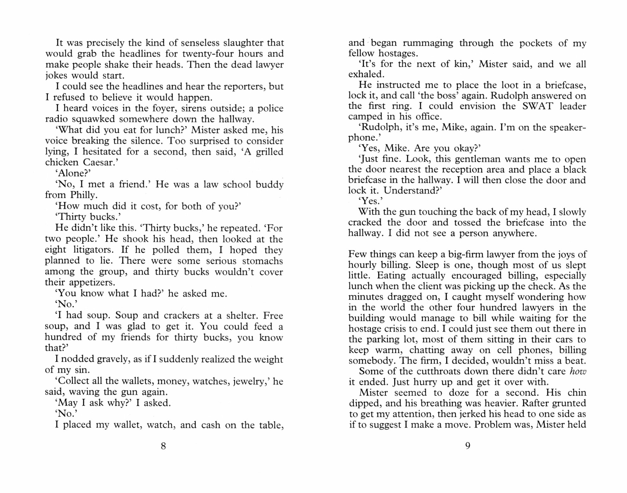 What he discovers is a shocking violation of the rights of the homeless on the city streets, with Drake & Sweeney up to its neck in it, and suddenly his conscience begins to stir. But to do the right thing, he might have to steal his own firm's secrets...