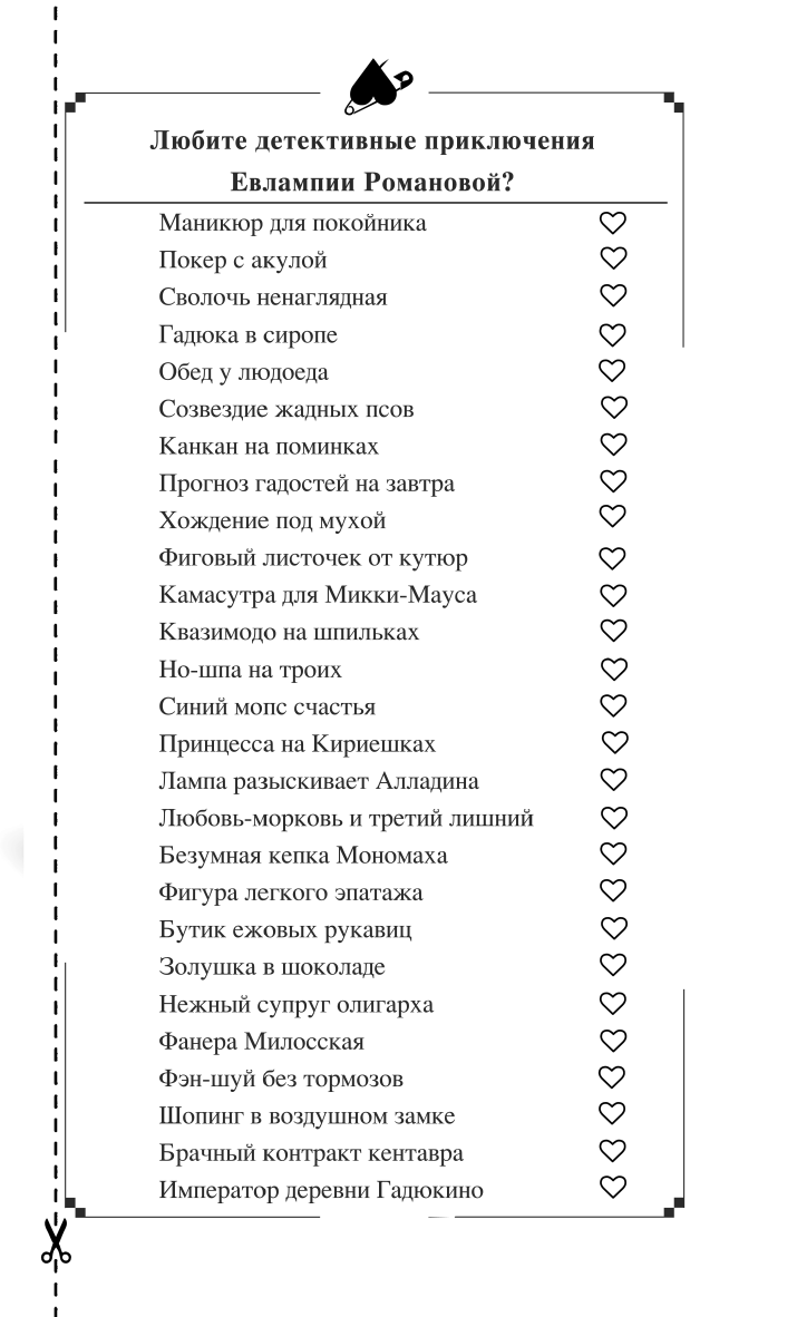 Евлампия Романова - персонаж моего детства. Помню, эти детективы всегда лежали у бабушки на полке, а теперь мне подвернулась новая история. Хоть все расследования в книгах Донцовой однообразны, это не отталкивает от чтения - скорее это «жвачка» для мозга, чтение, когда чего-то сложного, сверхпродуманного не хочется. Неунывающая Евлампия поднимет настроение.