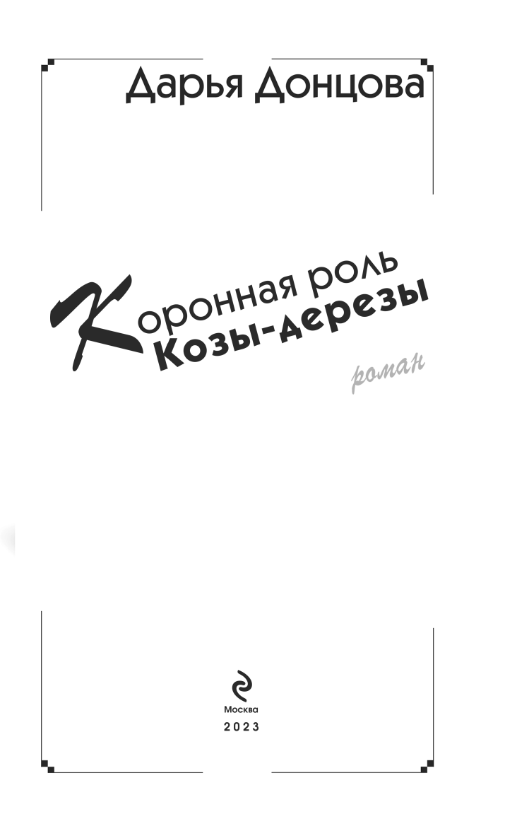 Коронная роль Козы-дерезы. Очередная книга Дарьи Донцовой, от покупки которой я просто не смогла отказаться. Расследование ведёт Евлампия Романова (одна из любимых моих персонажей). Как и обычно интересный детектив остался у меня в памяти. Интересная обложка (мне всегда очень нравится разглядывать её, ведь именно там скрываются некоторые намёки и загвоздки, которые впоследствии встретятся в тексте). Всё супер!