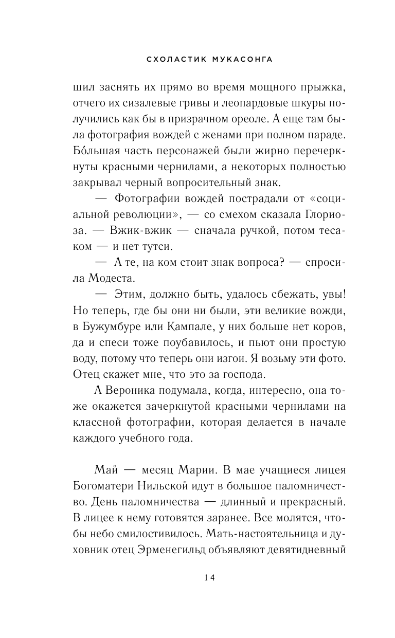 Тема шовинистических настроений отражена несравненно лучше. Вместе с тем, не покидает ощущения оборванности, словно тебе показывают фильм с 27-й по 73-ю минуту. И если концовка большей части известна, то к началу истории, а именно - к периоду колониального владычества и администрации тутси возникает множество вопросов. Даже описанный вскользь эпизод про "хутси" вносит серьёзную неоднозначность. В общем, книга должна вызывать интерес к изучению колониальной истории Руанды, но, к сожалению, вместо этого она надавит на эмоции.