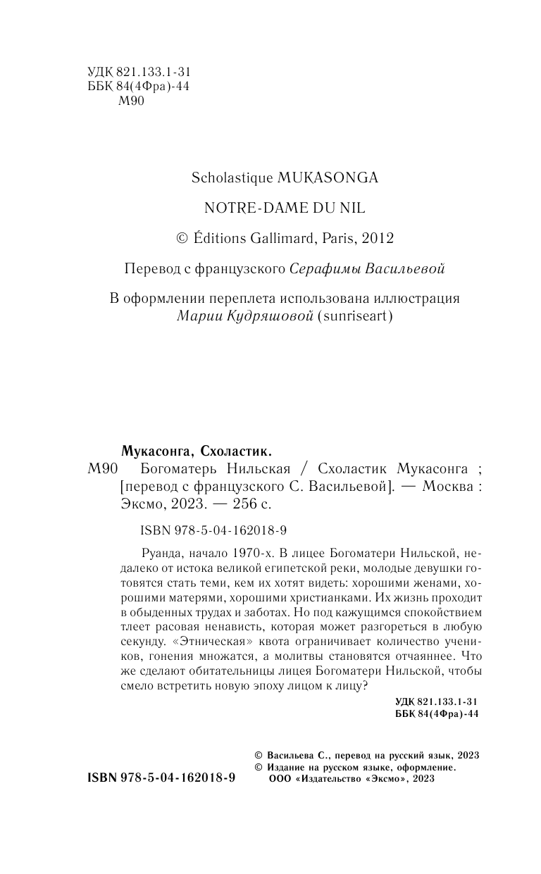 Книга: Богоматерь Нильская (Схоластик Мукасонга); Эксмо, Inspiria, Редакция 1, 2023