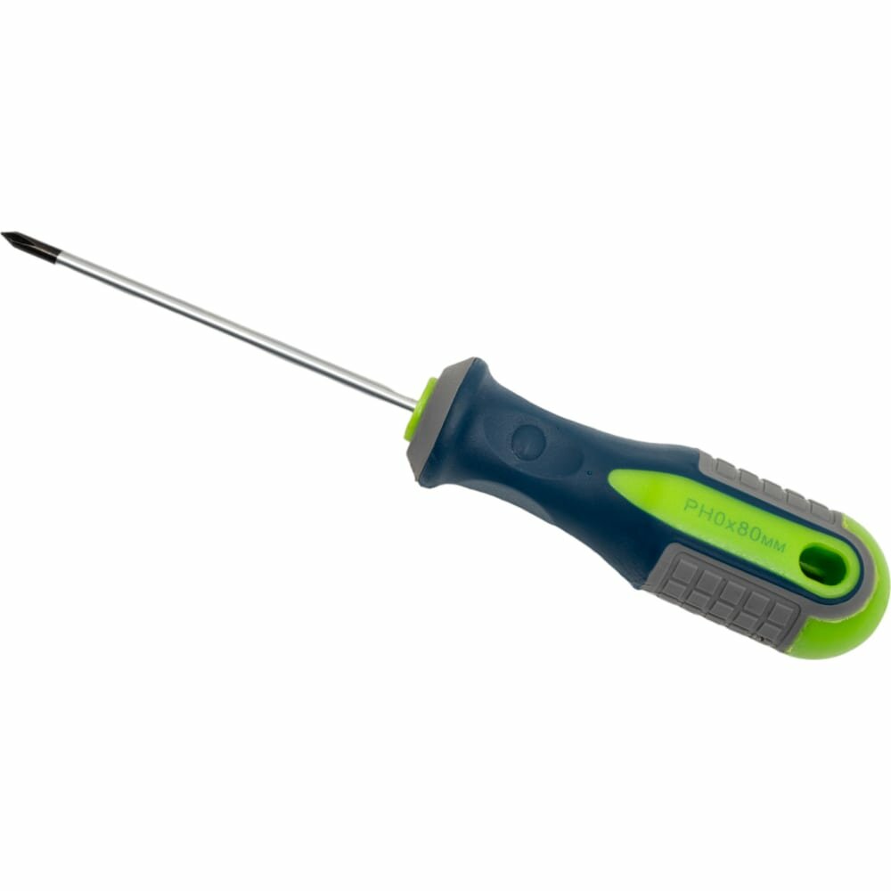 Отвертка Сибртех , PH0 x 80 мм, из стали CrV, с 3-х компонентной рукояткой, пригодится частным мастерам для монтажа/демонтажа крепежных элементов типоразмера PH0. Она поможет произвести ремонтные и монтажные работы дома, в гараже, на даче. Благодаря стержню длиной 80 мм отверткой можно работать в углублениях.