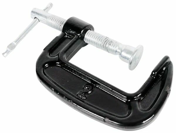 | Прочие особенности и свойства | Рама покрыта цветным лаком. Винт со специальным зажимом и крупной червячной резьбой позволяет надежно фиксировать предметы. Тип струбцины G-образная |