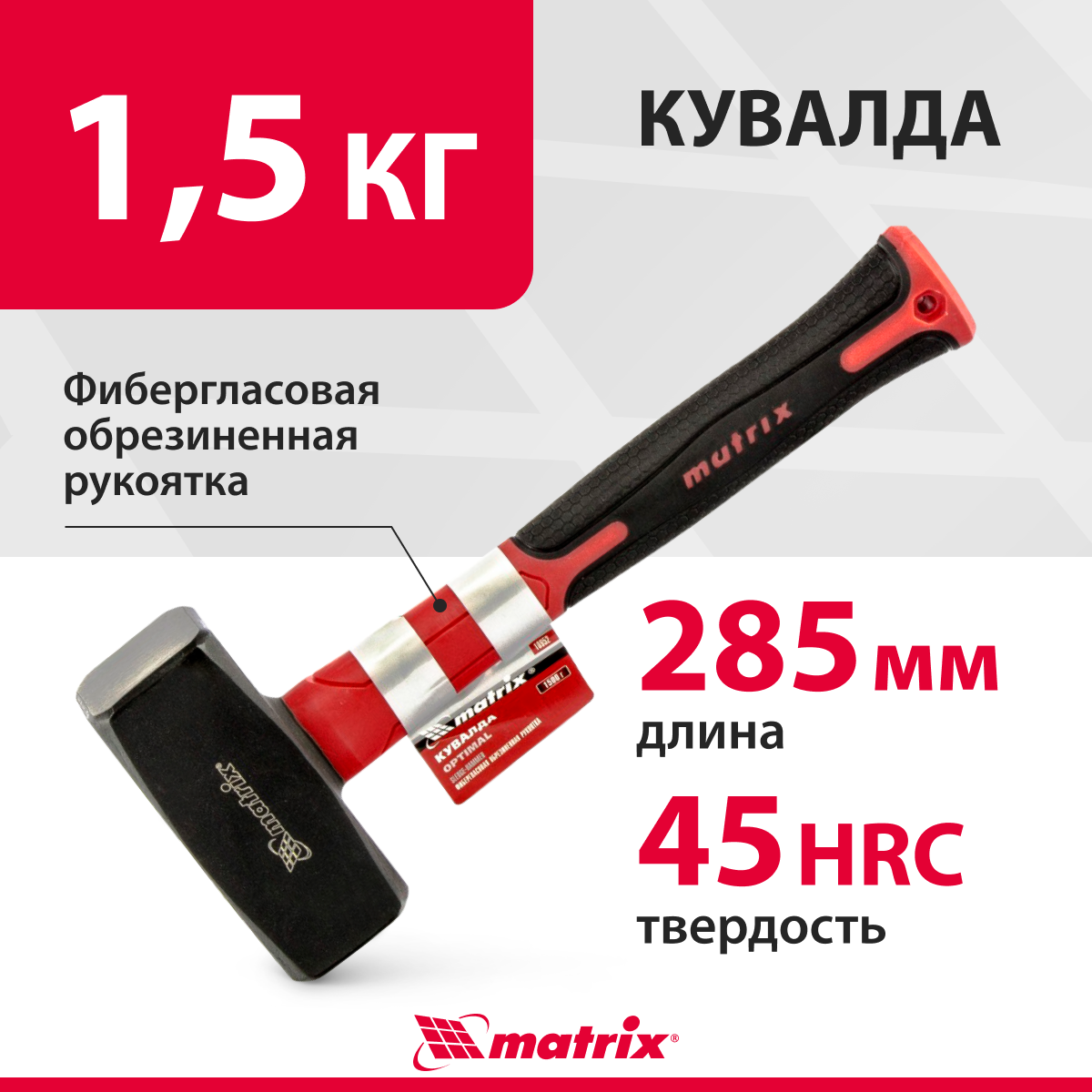 - ОНЛАЙН ТРЕЙД.РУ Кувалда, 1500 г, Optimal, фибергласовая обрезиненная рукоятка, MATRIX 10952