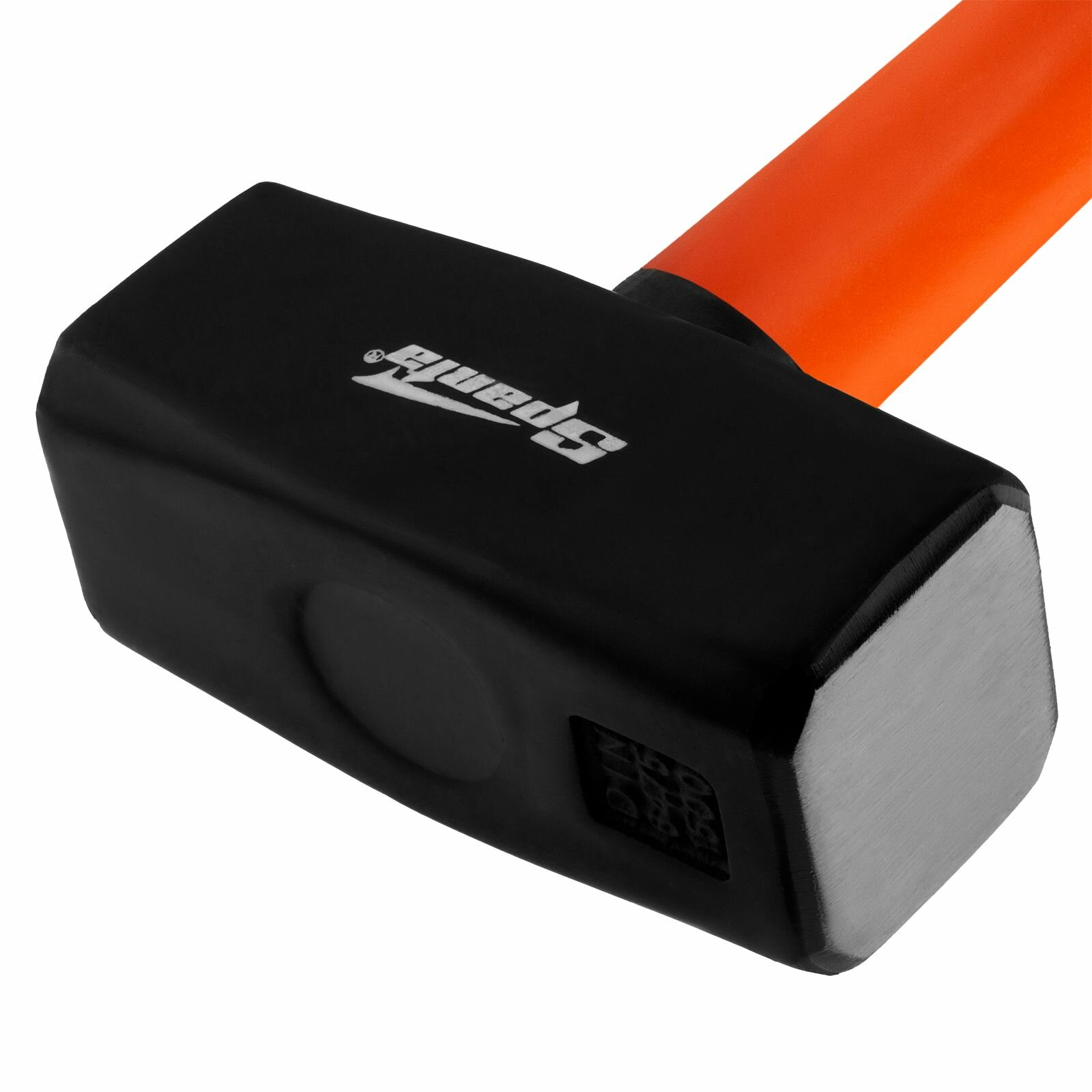 Головка кувалды кованая, покрыта черным лаком, изготовлена из стали 45. Бойку придана селективная закалка, обеспечивающая особую твердость и прочность 52 HRc. Боек слегка выпуклый и отшлифован с обеих сторон. Фибергласовая рукоятка амортизирует отдачу при ударе. Резиновое покрытие препятствует скольжению в руке и обеспечивает удобный и надежный захват.