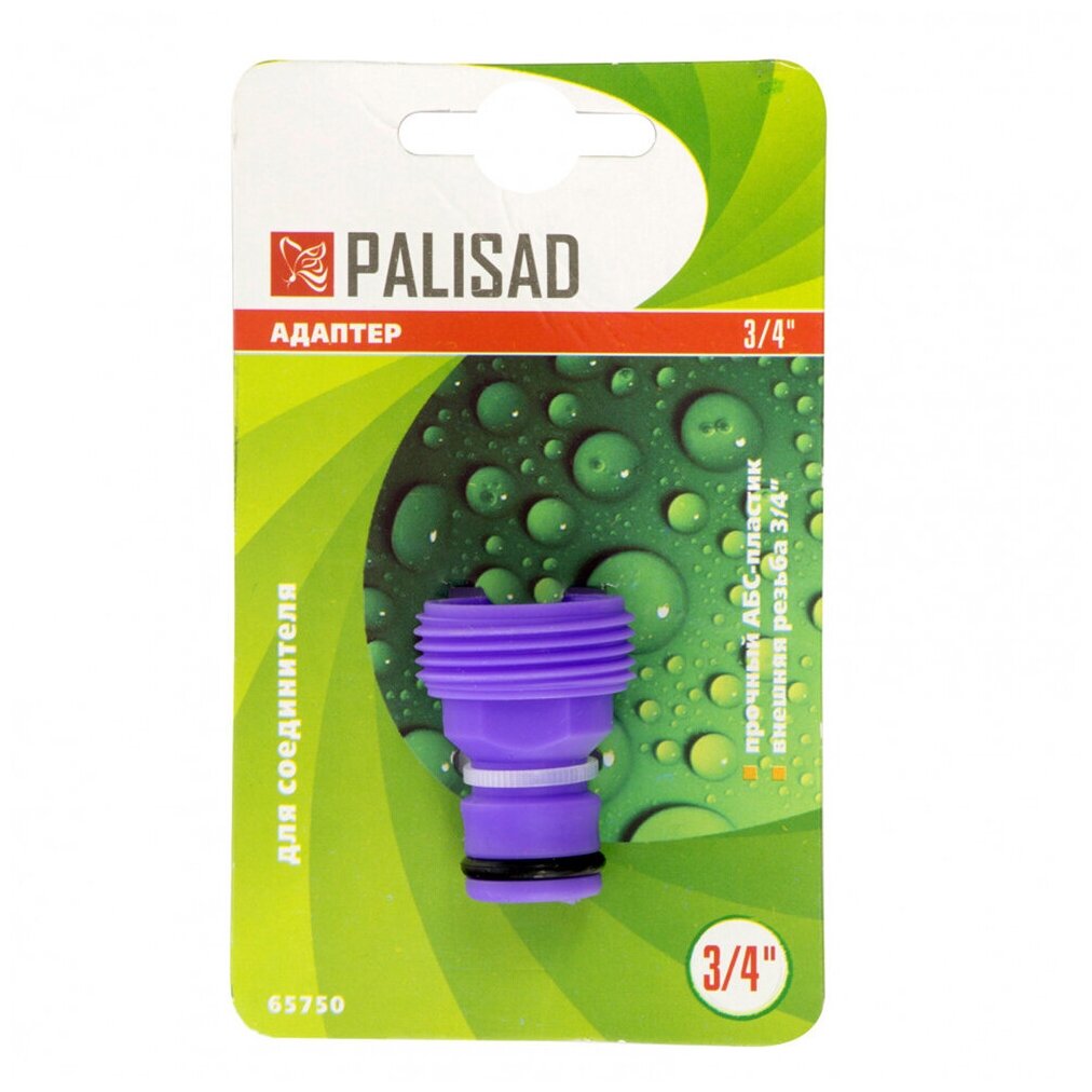 | Прочие особенности и свойства | Адаптер изготовлен из ударопрочной ABS-пластмассы., , Посадочный диаметр с внешней резьбой 3/4, с другой стороны адаптера штуцер (быстросъемное соединение)., , Штуцерный выход адаптера совместим со всеми элементами поливочной системы Palisad. |