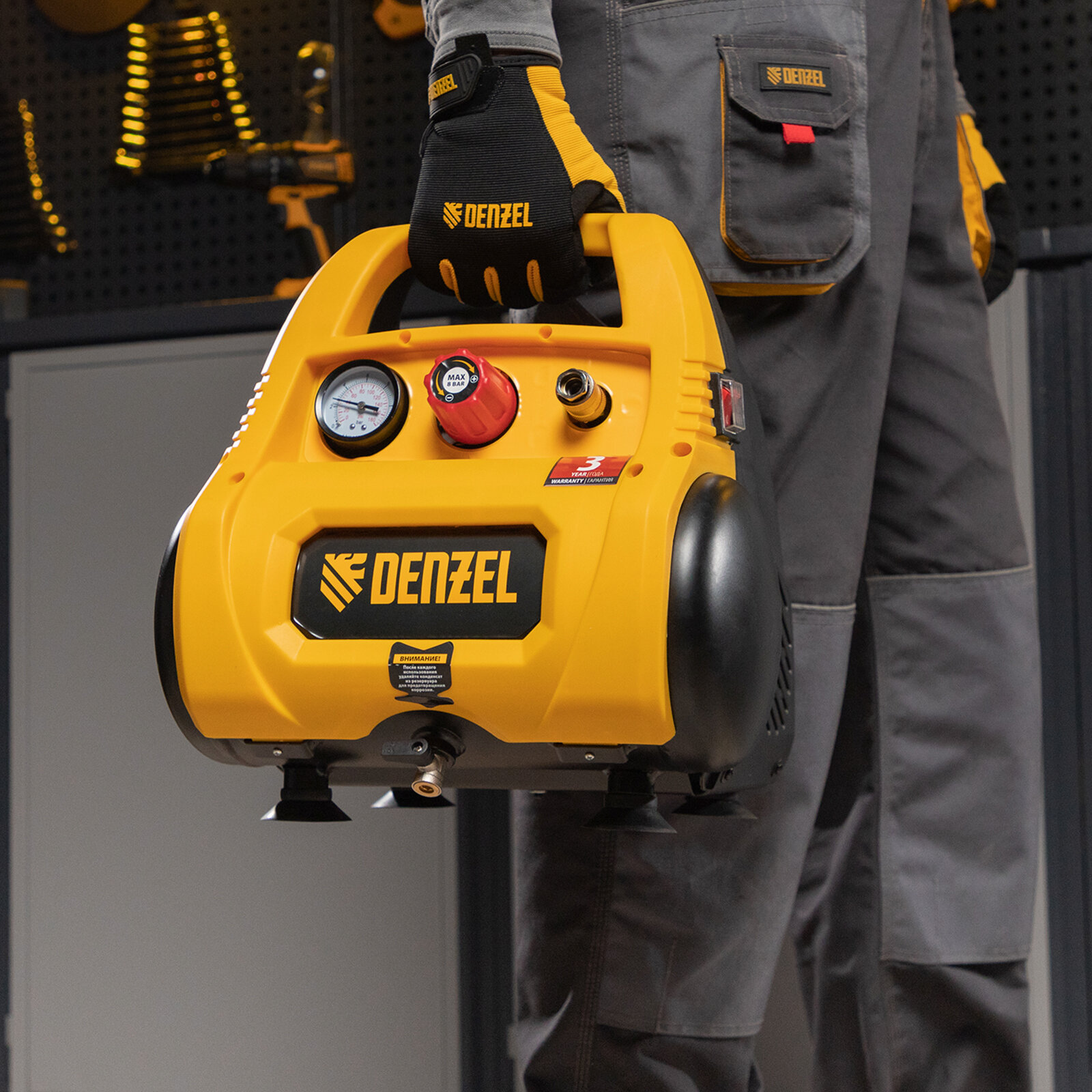- Компрессор воздушный безмасляный DENZEL, компактный, РС 1/6-180, 1,1 кВт, 180 л/мин, 6 л, 58057