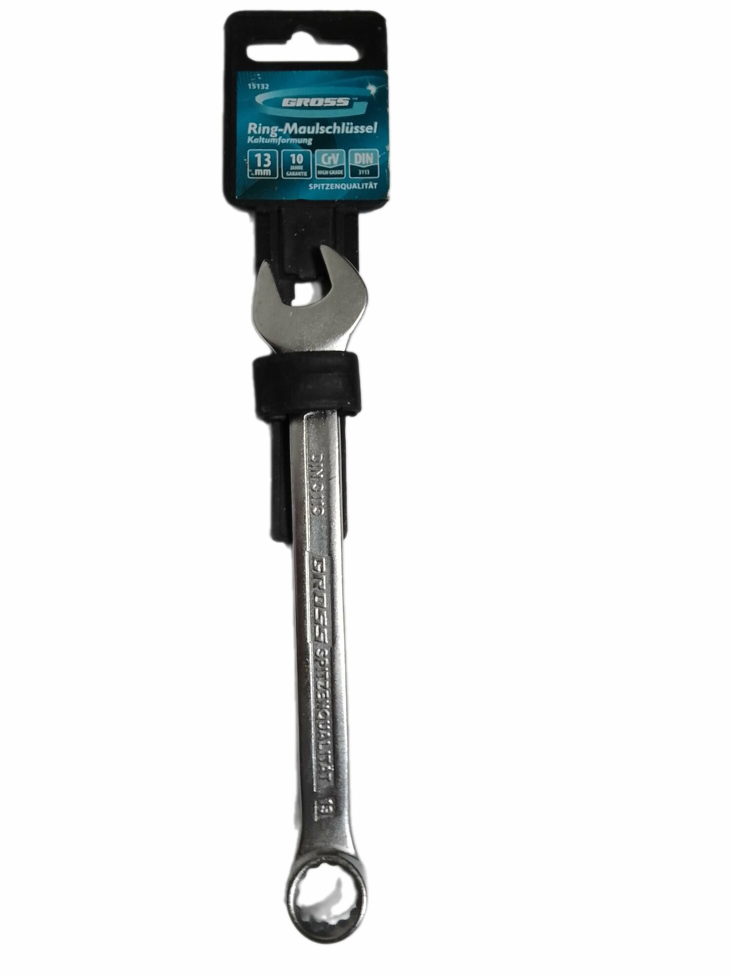 | Прочие особенности и свойства | Ключ комбинированный торговой марки GROSS предназначен для монтажа/демонтажа резьбовых соединений. Изготовлен из высококачественной хромованадиевой (Crv) стали методом холодного штампа.Твердость 45-48 HRC. Ключ с одной стороны оснащен захватом открытого типа рожковым и накидным (кольцевым) с другой стороны. Профиль кольцевого зева имеет 12 граней, что увеличивает площадь соприкосновения рабочих поверхностей и снижает риск деформации граней крепежа при монтаже. Угол наклона кольцевого зева относительно плоскости ключа в 15 градусов делает монтаж более удобным. Хромоникелевое покрытие ключа улучшает антикоррозийные свойства инструмента. |