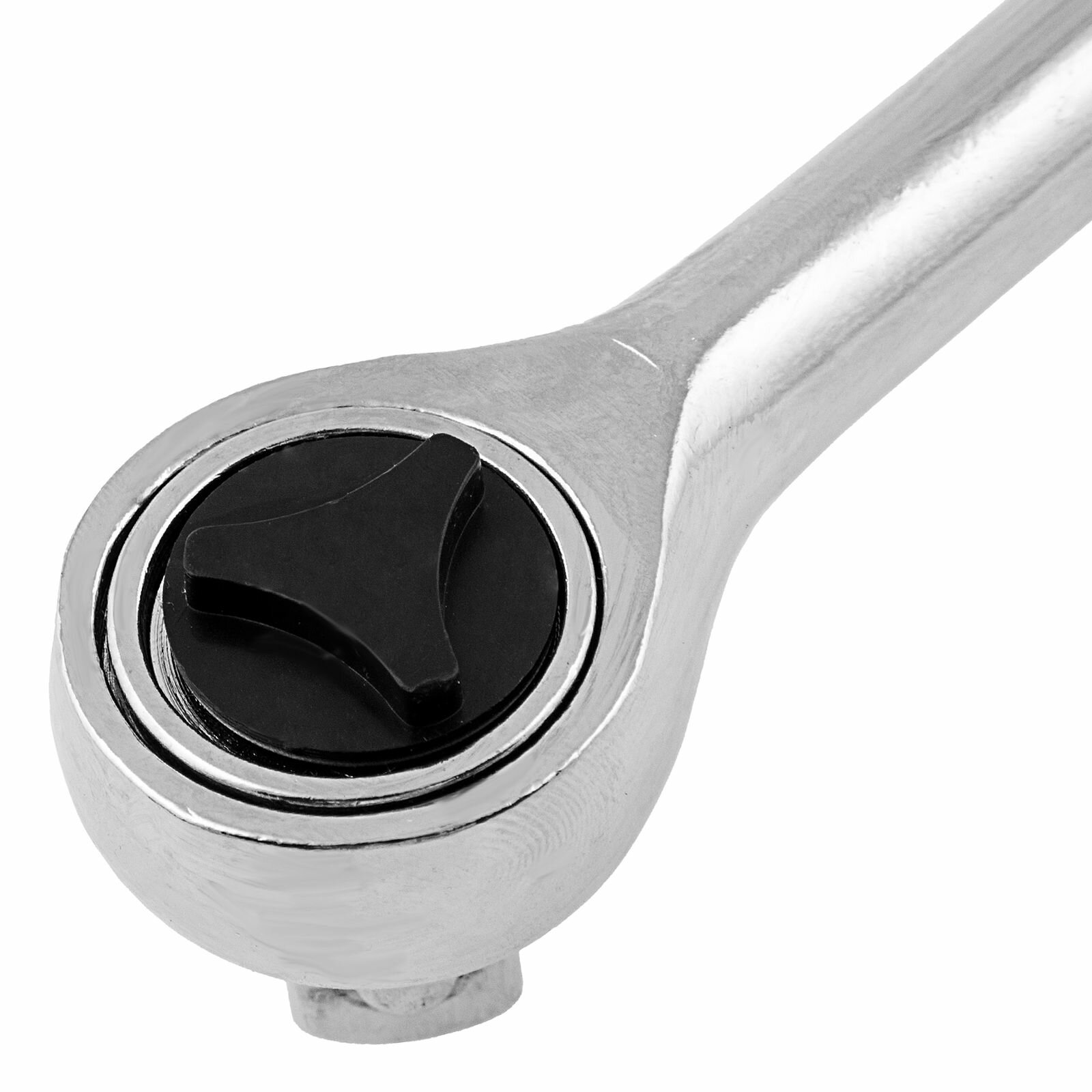 | Прочие особенности и свойства | Ключ-трещотка изготовлен из хромованадиевой стали. Имеет антикоррозионное покрытие из хрома. Храповый механизм с переключателем обеспечивает плавный ход и возможность быстрой смены направлений вращения ключа. Присоединительный квадрат с шариковым фиксатором надежно удерживает съемные торцевые головки различных размеров, удлинители, адаптеры и другие насадки. Ключ предназначен для быстрого монтажа резьбовых соединений. |