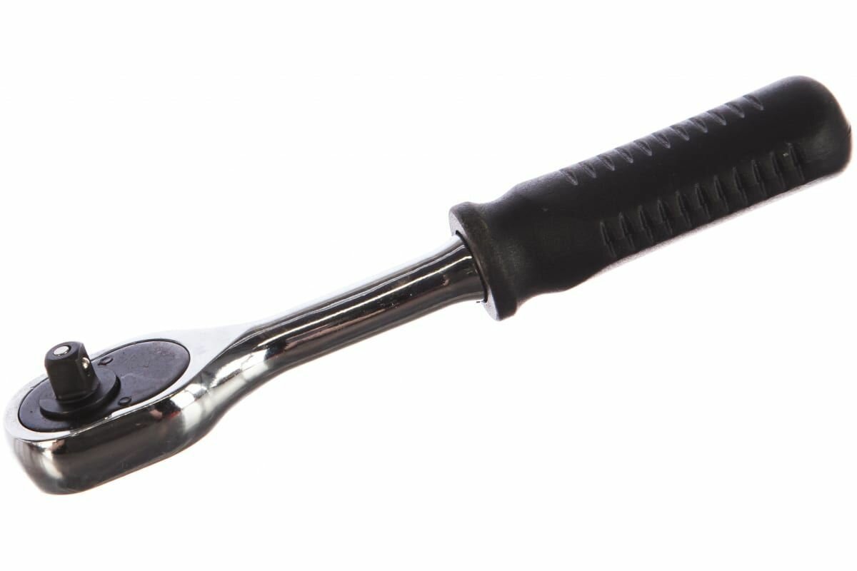 | Прочие особенности и свойства | Ключ изготовлен из хромванадиевой стали. Имеет антикоррозионное покрытие из хрома. Храповый механизм с переключателем обеспечивает плавный ход и возможность быстрой смены направления вращения ключа. Присоединительный квадрат с шариковым фиксатором надежно удерживает съемные торцевые головки различных размеров, удлинители, адаптеры. Ключ снабжен механизмом быстрого сброса насадок. Ключ имеет эргономичную ручку с фрикционными ребрами, предотвращающими скольжение. Предназначен для быстрого монтажа |